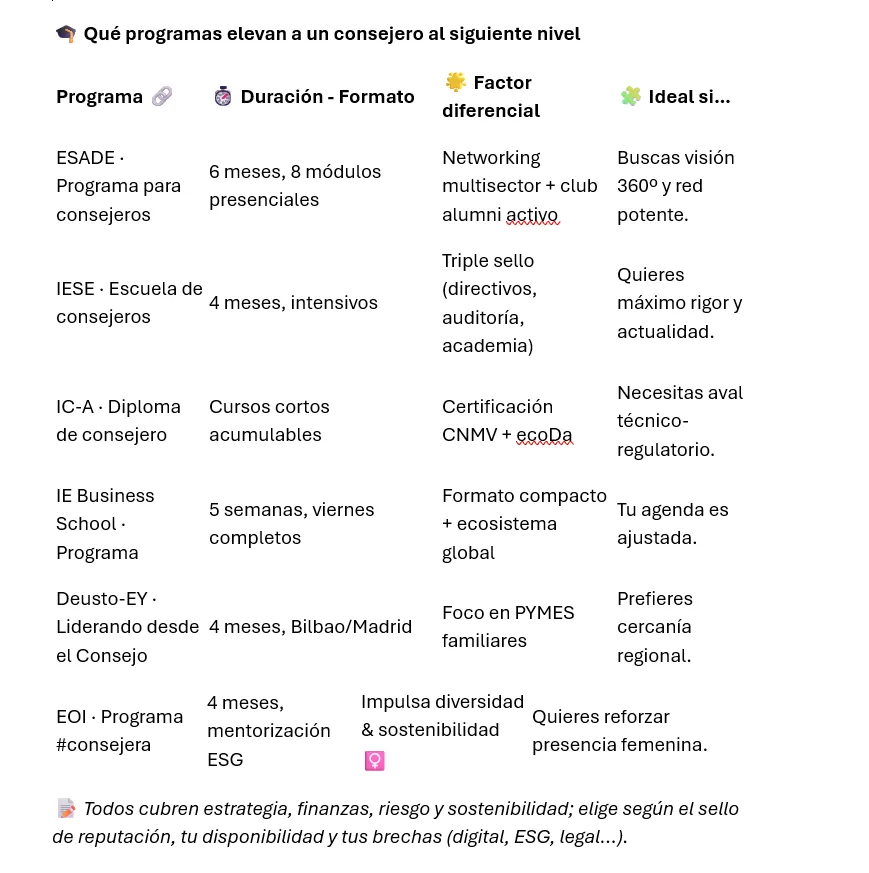 • 👨💼 Dueños y CEOs: incorporar un consejero o senior advisor no es un coste, es un multiplicador de valor. • 🎯 Directivos con experiencia: cursar uno de estos programas os convertirá en arquitectos del buen gobierno.